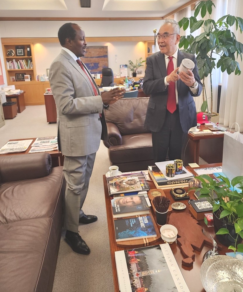 During their meeting, they discussed a range of issues related to long-term diplomatic relations between Tanzania and Japan and the representation of the respective countries in Canada. The High Commissioner also shared Tanzania's Coffee with Ambassador Yamanouchi, as Japan is one of the countries that buy a lot of our coffee, referred to in Japan as the Kilimanjaro coffee.